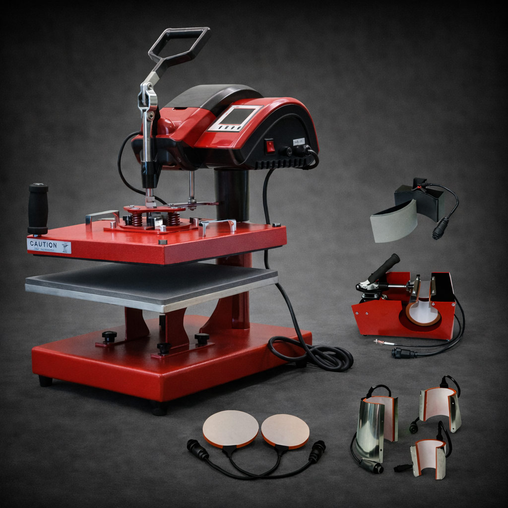 Heat Press for the T-shirt, Plated (2 Sizes), Mugs (4 sizes) and Cap.