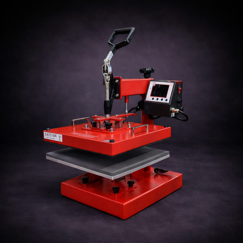 Automatic open and close heat press 38x38cm "Slide-out Under Plate, Offers a two-stage temperature and time setting with a digital display"