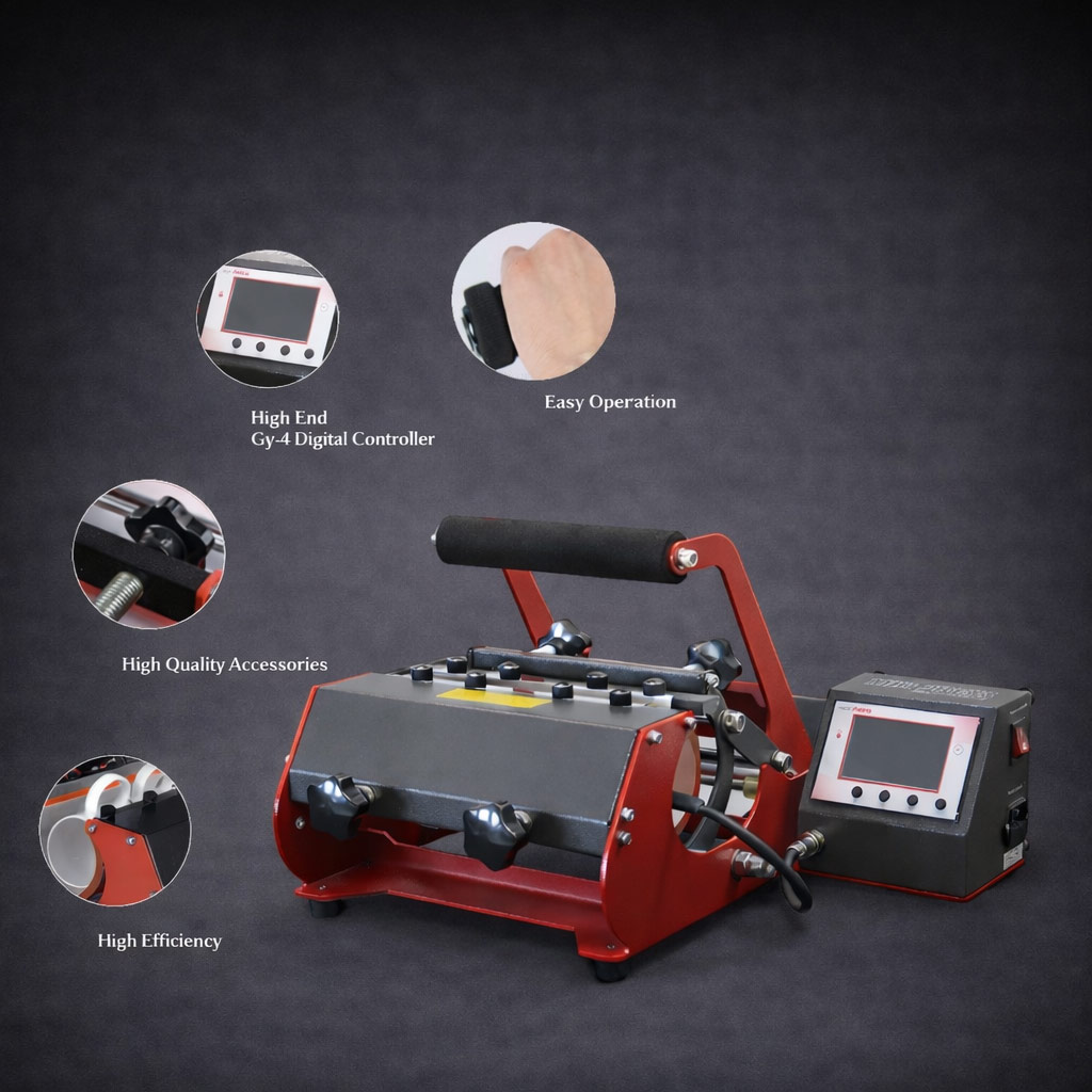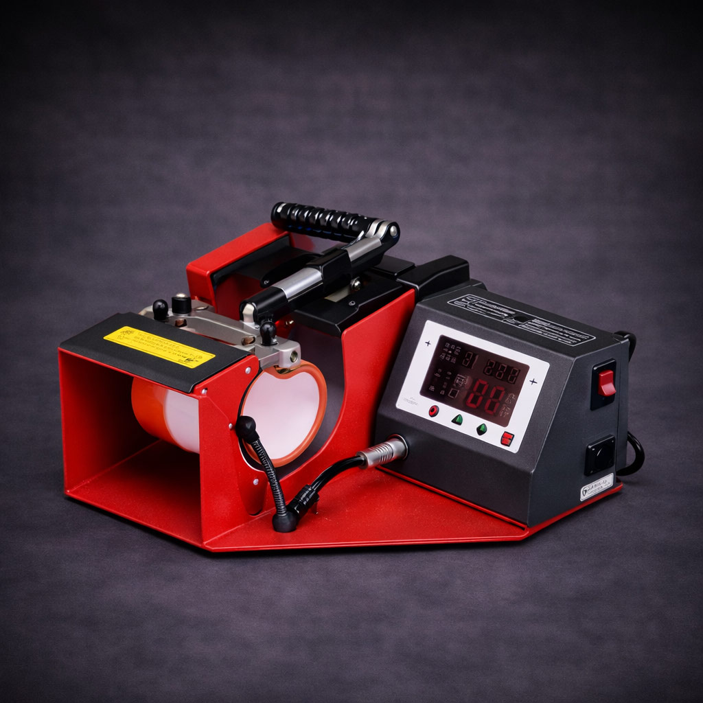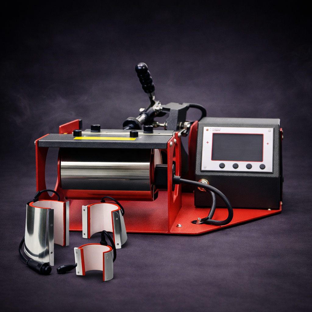Heat Press: The "MOK" MK-10C mug press by MIR-AUS is ideal for comfortably performing sublimation transfers on ceramic mugs and other similar objects.